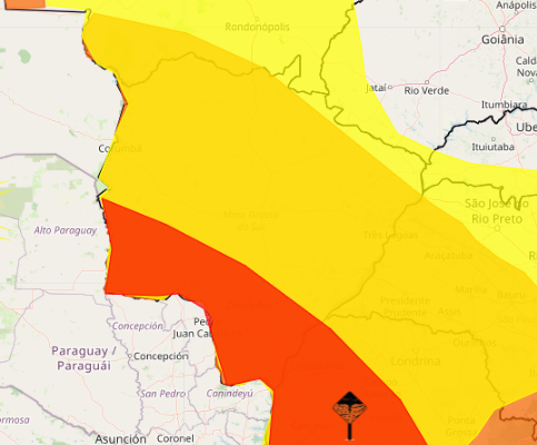 Em relação às temperaturas, estão previstas mínimas de 17°C e máximas de 37°C. Em Campo Grande, são esperadas mínima de 21°C e máxima de 31°C.